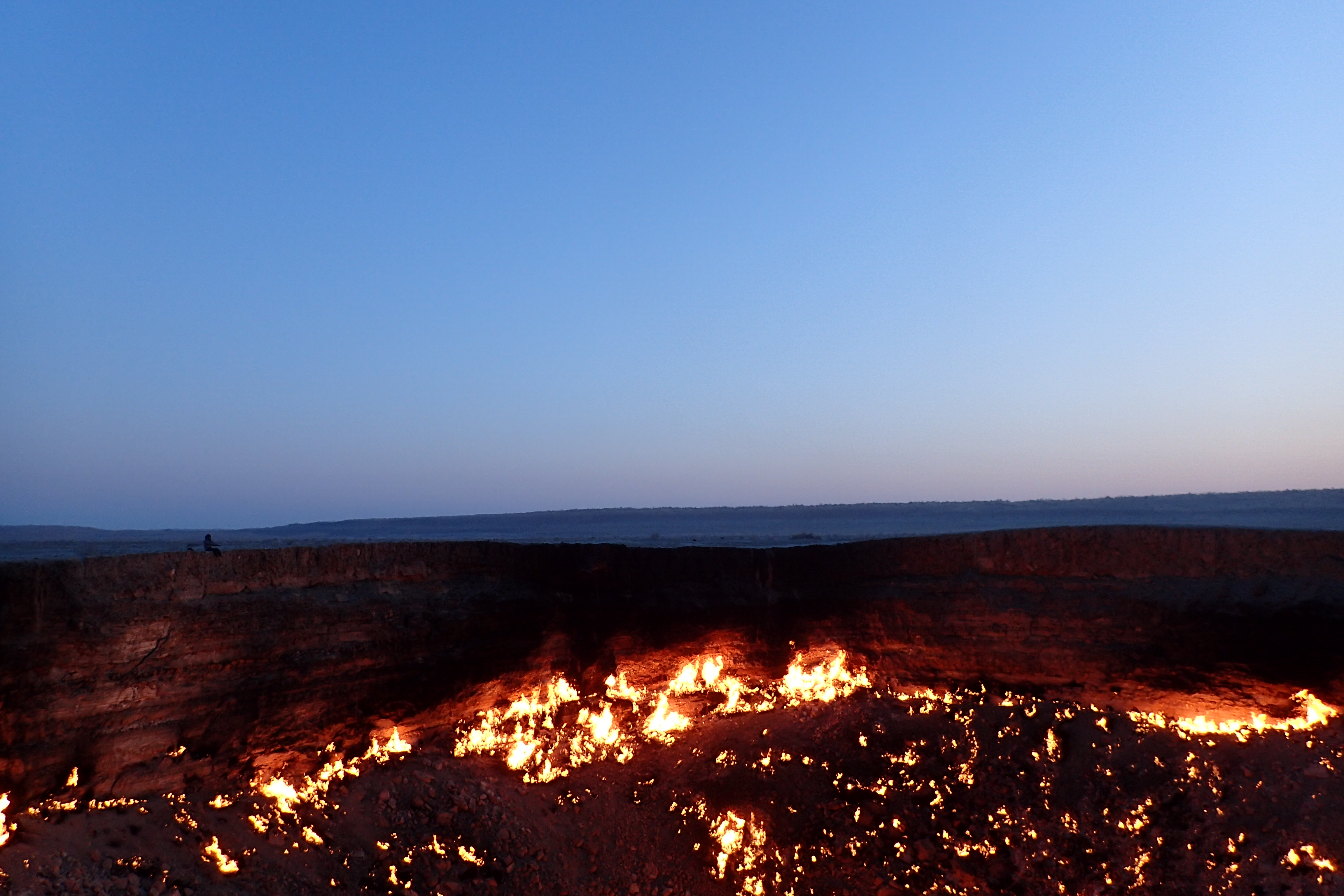 Sunrise over the Gates of Hell in the Karakum desert, Turkmenistan